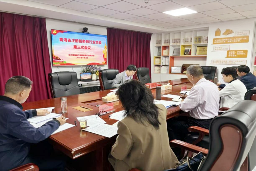 近期,青海省注册税务师行业党委召开2025年第三次会议,认真学习习近平总书记重要讲话重要指示精神,传达学习中共青海省委十四届九次全体会议精神。